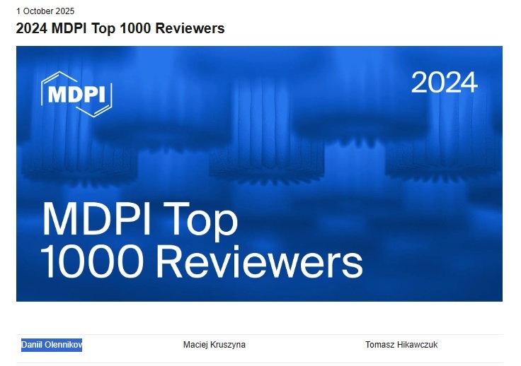 Отмечены 1000 лучших рецензентов MDPI 2024 года. Из 215 000 рецензентов из 65 стран и регионов мира выбраны лауреаты, отличающиеся исключительным опытом, усердием и преданностью развитию исследований посредством своевременных и продуманных рецензий. В список вошли сотрудники лаборатории медико-биологических исследований ИОЭБ СО РАН.