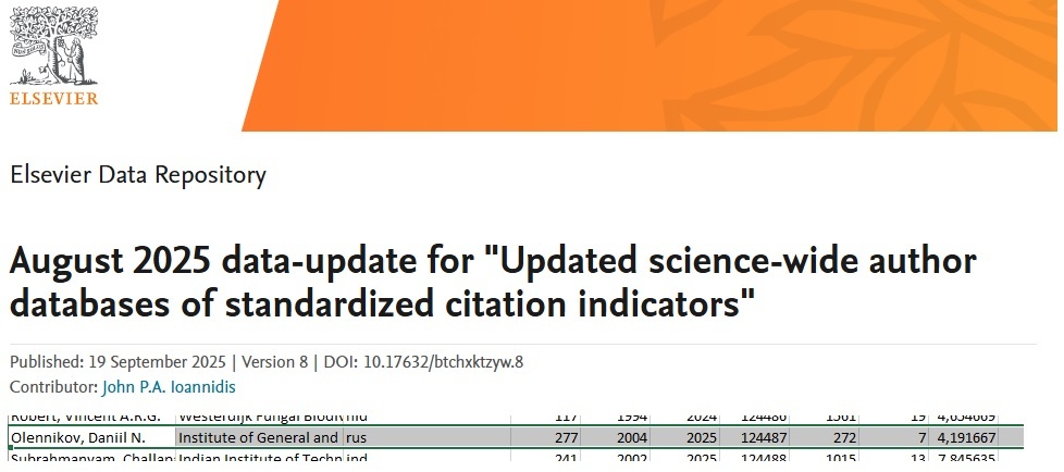 Стэнфордский университет недавно опубликовал обновлённый список 2% самых цитируемых учёных в различных дисциплинах – World's Top 2% Scientists. Этот рейтинг, считающийся самым престижным в мире, основан на библиометрической информации, содержащейся в базе данных Scopus, и включает в себя данные более 190 000 исследователей из более чем 8,5 миллионов учёных мира, считающихся активными в 22 научных областях и 176 подобластях. В списке присутствуют представители лаборатории медико-биологических исследований ИОЭБ СО РАН.